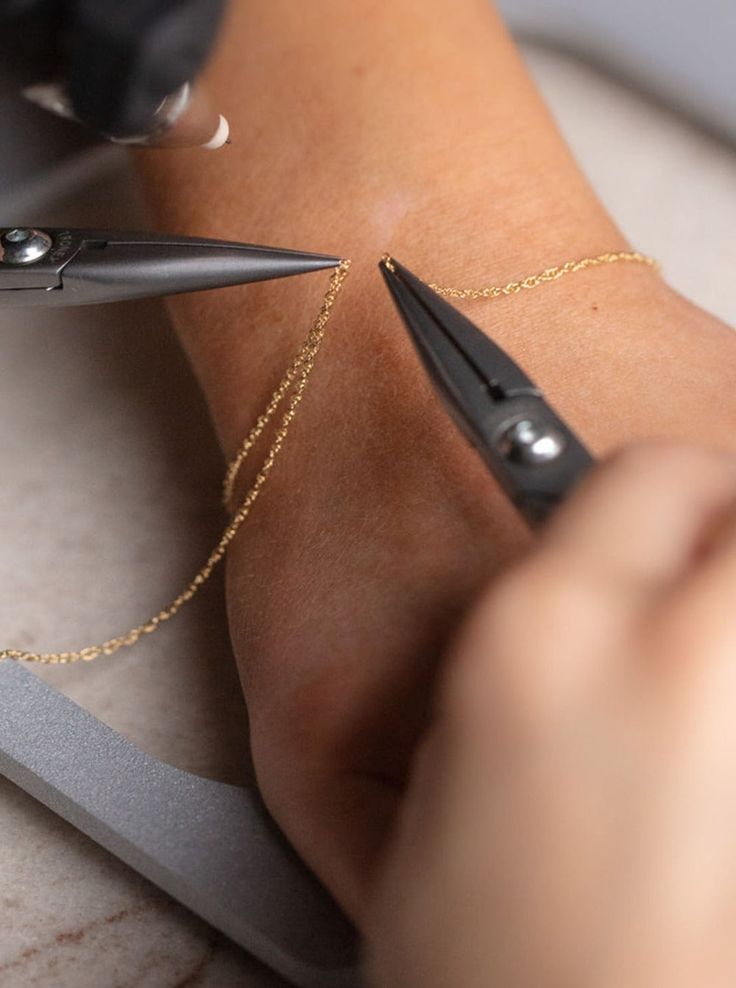 It is a custom-fit, clasp-free chain with an everlasting shine